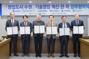 미디어라이프 중부신문 이종인 기자 | 수원특례시가 경기창조경제혁신센터, 4개 대학과 협력해 대학의 기술창업을 발굴하고, 지원한다. 수원시와 경기창조경제혁신센터, 4개 대학은 30일 시청 상황실에서 ‘창업도시 수원 기술창업 혁신 관·학 업무협약’을 체결하고, 협력을 약속했다. 협약 기관들은 대학의 우수한 연구 성과, 인적 자원을 보유한 우수 기술창업기업을 발굴하고, 기술의 사업화를 촉진하기 위해 협력하기로 했다. 수원시는 수원기업새빛펀드의 수원기업 의무투자 약정액으로 투자를 유치하고, 경기창조경제혁신센터는 기업에 멘토링, 엑셀러레이팅(스타트업이 빠르게 성장하도록 지원), 밋업(투자자 유치 행사), 아이알(IR)데이, 투자 등을 지원한다. 대학교는 실험실 창업·창업 보육기업을 추천한다. 이날 협약을 바탕으로 대학창업 특화 프로그램인 ‘새빛 유-테크(U-Tech).판’을 시작한다. 경기창조경제혁신센터의 엑셀러레이팅 인프라를 활용해 우수한 기술력과 성장 잠재력을 갖춘 창업기업을 발굴하고, 기업의 투자 유치 역량을 극대화하는 프로그램이다. 3대 핵심 목표는 ‘인프라 적극 활용’, ‘선순환 구조 구축’,