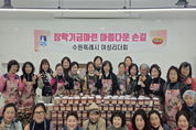미디어라이프 중부신문 이종인 기자 | 수원시여성리더회가 5일 행궁동 어울림센터 공용주방에서 ‘장학기금 마련 젓갈 포장 행사’를 열었다. 김미애 수원시여성리더회 총회장과 이지영 수원시여성단체협의회 명예회장 등 회원 20여 명이 참여해 명란젓과 낙지젓 등 4종의 젓갈을 소포장해 판매했다. 수익금은 장학금으로 기부할 예정이다. 김미애 총회장은 “장학기금 마련에 동참해 주신 모든 분께 감사드린다”며 “이번 행사가 학생들의 미래를 응원하는, 작은 힘이 되길 바란다”고 말했다. ‘수원시 여성지도자대학’ 수료생으로 구성된 수원시여성리더회는 2004년 출범 이후 한부모가정 지원, 저소득 중·고등학생 장학금 후원, 복지관 중식 봉사, 소외계층 김장 봉사, 헌혈 캠페인 등 지역사회를 위한 나눔·봉사 활동을 꾸준히 하고 있다.
