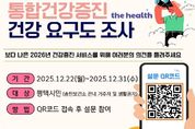 미디어라이프 중부신문 이종인 기자 | 평택시 송탄보건소는 2026년 통합건강증진사업 계획수립을 위해 지역주민을 대상으로 건강요구도 설문조사를 진행한다고 밝혔다. 이번 조사는 지역사회 주민들의 만성질환 관리, 신체활동, 비만 예방관리 등 건강 관련 요구를 파악하여, 2026년 지역사회 통합건강증진사업 계획수립에 반영하기 위해 마련됐다. 설문 내용은 △보건소 건강증진사업에 대한 참여 경험 및 인식도 △건강증진을 위해 가장 필요하다고 생각하는 우선 사업 △생애주기별 보건사업 대상 우선순위 등 총 10개 문항으로 구성됐으며, 설문 결과는 2026년 통합건강증진사업의 세부 사업 발굴과 우선순위 설정을 위한 기초자료로 활용될 예정이다. 설문조사는 평택시와 보건소 누리집과 송탄보건소 카카오톡 채널(송탄보건소 건강정보톡!) 등에 게시된 정보무늬(QR코드)를 통해 온라인으로 진행되며, 설문조사에 참여한 주민을 대상으로 추첨을 통해 모바일 상품권을 제공할 예정이다. 송탄보건소 조민수 소장은 “이번 건강요구도 조사는 주민의 목소리를 직접 듣고 지역에 맞는 건강증진사업을 추진하기 위한 중요한 과정”이라며 “시민들의