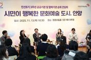 미디어라이프 중부신문 이종인 기자 | 안양시는 13일 오전 10시 30분 평촌아트홀 1층 카페 아트림에서 ‘시민이 행복한 문화예술 도시, 안양’을 주제로 (재)안양문화예술재단과 민선 8기 3주년 공공·협력기관 순회 간담회를 개최했다. 이번 간담회는 민선8기 3주년을 맞아 안양시 문화예술 정책의 주요 성과를 공유하고, 현장 예술인과 시민의 의견을 직접 청취하기 위해 마련됐다. 행사에는 안양 지역 예술인과 문화단체 관계자, 시민 등 120여 명이 참석해 안양의 문화예술 비전과 발전 방향에 대해 활발한 소통의 시간을 가졌다. 간담회에서는 ▲시민이 주인공이 되는 ‘안양춤축제’ ▲생활문화로 피어나는 ‘마을축제 지원사업’ ▲지역·청년예술인 창작활동 지원 ▲안양박물관과 공공예술프로젝트(APAP) 등 시민이 함께 만들어가는 다양한 문화예술 사례가 소개됐다. 안양춤축제는 안양만의 축제가 아니라 관광형 축제로 거듭나고 있다. 지난 9월 3일간 열린 축제에는 총 14만2,000여명이 참여했는데, 이 중 40%가 타 시도민으로 추산된다. 춤축제 기간 열린 유스클럽챔피언십의 한 고등학생 참가자는 “대회 분위기가 생각보다 훨씬 뜨거