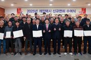 미디어라이프 중부신문 이종인 기자 | 용인특례시는 16일 시청 비전홀에서 ‘2025년도 개인택시운송사업 신규 면허증 수여식’을 개최하고, 신규 면허자 35명에게 면허증을 전달했다. 이날 신규 면허 공급은 제5차 택시 총량제에 따른 것으로 2019년 11월 이후 6년 만에 이뤄진 신규 택시 증차다. 시는 지난 8월 1일 개인택시운송사업 신규 면허 모집 공고로 132명의 신청을 받았고, 심사를 거쳐 지난 8일 최종 35명을 신규 면허자로 확정했다. 시는 2025년부터 2028년까지 택시 총 135대를 증차할 계획이다. 시는 증차가 마무리되면 용인지역 전체 택시 수는 2051대로 늘어나 시민들이 택시를 이용하는 데 느끼는 불편이줄어들 것으로 기대하고 있다. 이상일 시장은 “2019년 이후 6년 만에 신규 면허가 발급이 됐는데, 2028년까지 순차적으로 2051대까지 택시가 늘어나면 시민들 입장에서도 매우 반가운 일이라고 생각한다"며 "오늘 발급 받으신 분들을 진심으로 축하드리며, 시민을 위해 앞으로 더욱더 멋진 활동을 해주시길 바란다”고 말했다. 이 시장은 “시민이 늘어날수록 다양한 교통