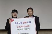 미디어라이프 중부신문 이도경 기자 | 연천군 전곡읍에 소재한 태성광고 인테리어는 지난 11일 지역사회 어려운 이웃을 돕기 위한 성금 100만원을 경기 사회복지공동모금회를 통해 전곡읍지역사회보장협의체에 기탁했다. 이상훈 대표는 전곡읍지역사회보장협의체 민간위원장으로 활동하면서 지역의 사회보장 증진과 현장밀착형 사회복지 서비스 제공을 위해 다양한 사업을 추진하는 등 꾸준한 나눔과 기부를 통해 지역사회에 귀감이 되고 있다. 오릴리 전곡읍장은 “어려운 여건 속에서도 지속적인 기부와 봉사, 지역사회 나눔 실천을 위해 앞장서고 계시는 이상훈 위원장님께 감사드린다”며 “앞으로도 민관이 협력해 찾아가는 맞춤형 복지서비스 지원을 위해 최선을 다하겠다”고 밝혔다. 기탁된 성금은 사회복지공동모금회 전곡읍지역사회보장협의체 지정기탁금으로 적립돼 복지사각지대 가구 등 우리 주변의 어려운 이웃을 돕기 위한 협의체 특화사업에 소중하게 사용될 예정이다.